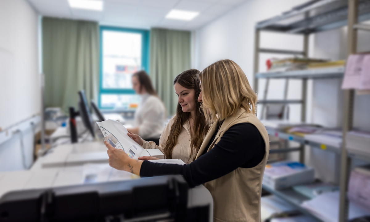 Als Medientechnologe Druck bist du vor allem im Lettershop tätig. Du bereitest variable Daten (z. B. Adressdaten) vor. Mit diesen Daten produzierst du selbstständig zukunftsorientierte Druckprodukte (z. B. personalisierte Mailings) an unserer Digitaldruckmaschine. Du steuerst die Druckmaschine, überwachst den Produktionsprozess und sorgst für makellose Ergebnisse. Ein modernes Maschinenumfeld und das Know-how deiner Ausbilder stehen dir in der dreijährigen Ausbildung zur Verfügung. Dabei lernst du die nötigen Techniken, Tipps und Tricks, um jeden Kundenwunsch optimal zu erfüllen.